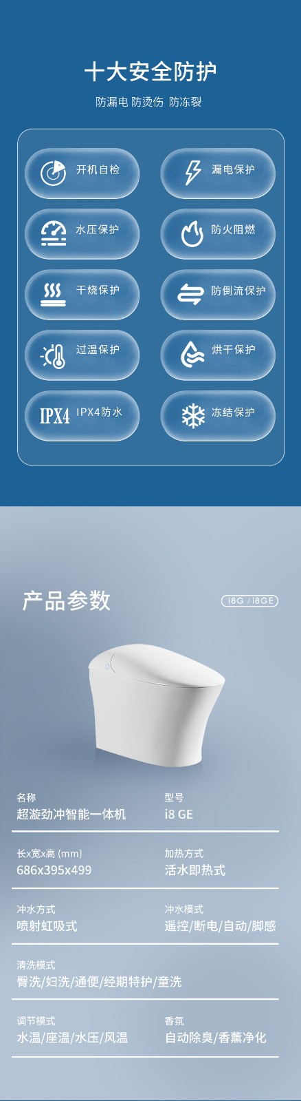 產品型號:i8GE 智能馬桶